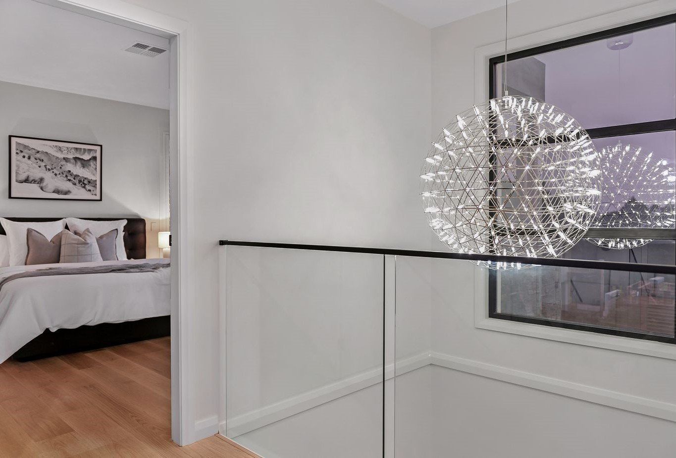- High end 1900mm engineered hardwood blackbutt floors throughout upstairs under soaring ceilings